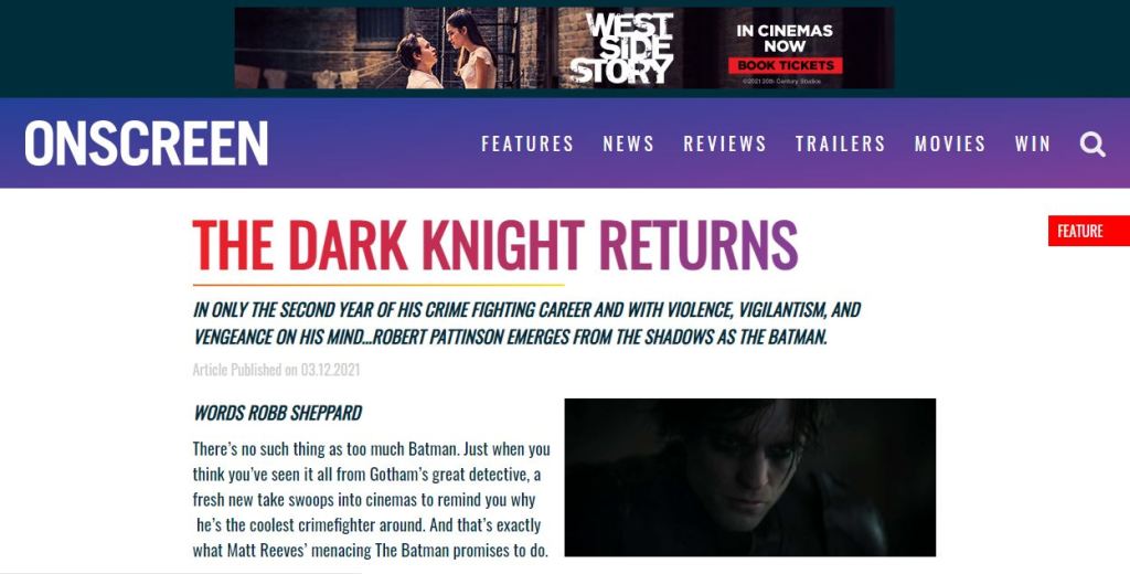 Follow this link to read the rest of my preview of The Batman for Onscreen Magazine.