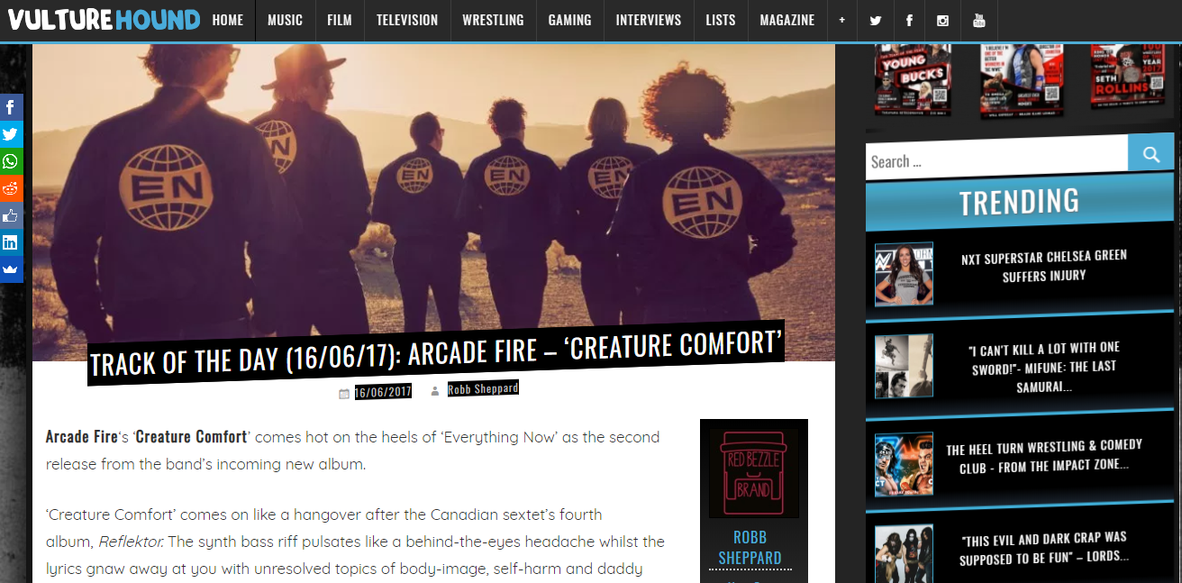 “(Arcade Fire‘s) synth bass riff pulsates like a behind-the-eyes headache whilst the lyrics gnaw away at you with unresolved topics of body-image, self-harm and daddy issues. Perverse then, that it’s still quite fun.”