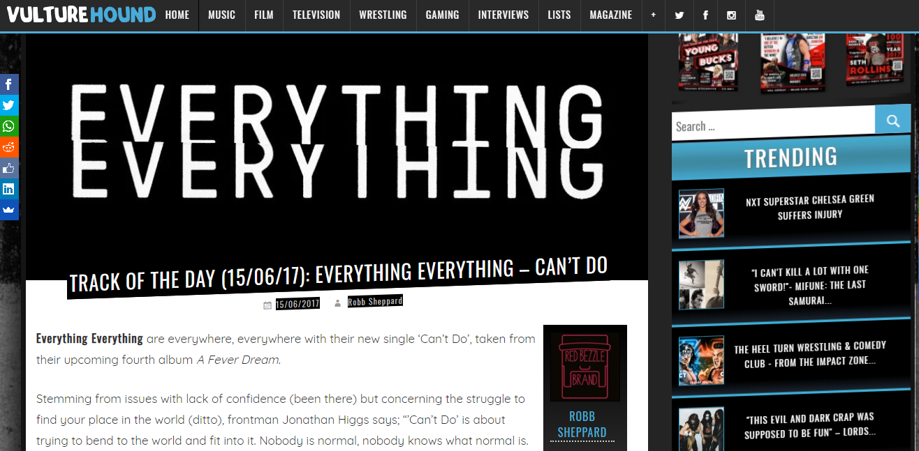 You can find links to my full Track of the Day pieces for VultureHound both here (Arcade Fire) and here (Everything Everything).